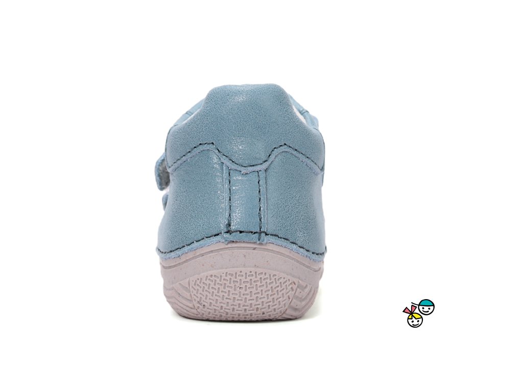 Dětské kotníkové kožené vycházkové botky s krásně ohebnou podešví, okopová špička ochrání botičky před okopáním, širší střih, vhodné pro normální až širší nožičky. Tyto botičky jsou brány i jako barefoot kompromis. Zapínání na suchý zip.