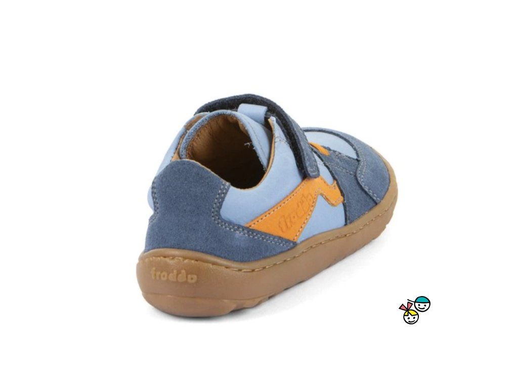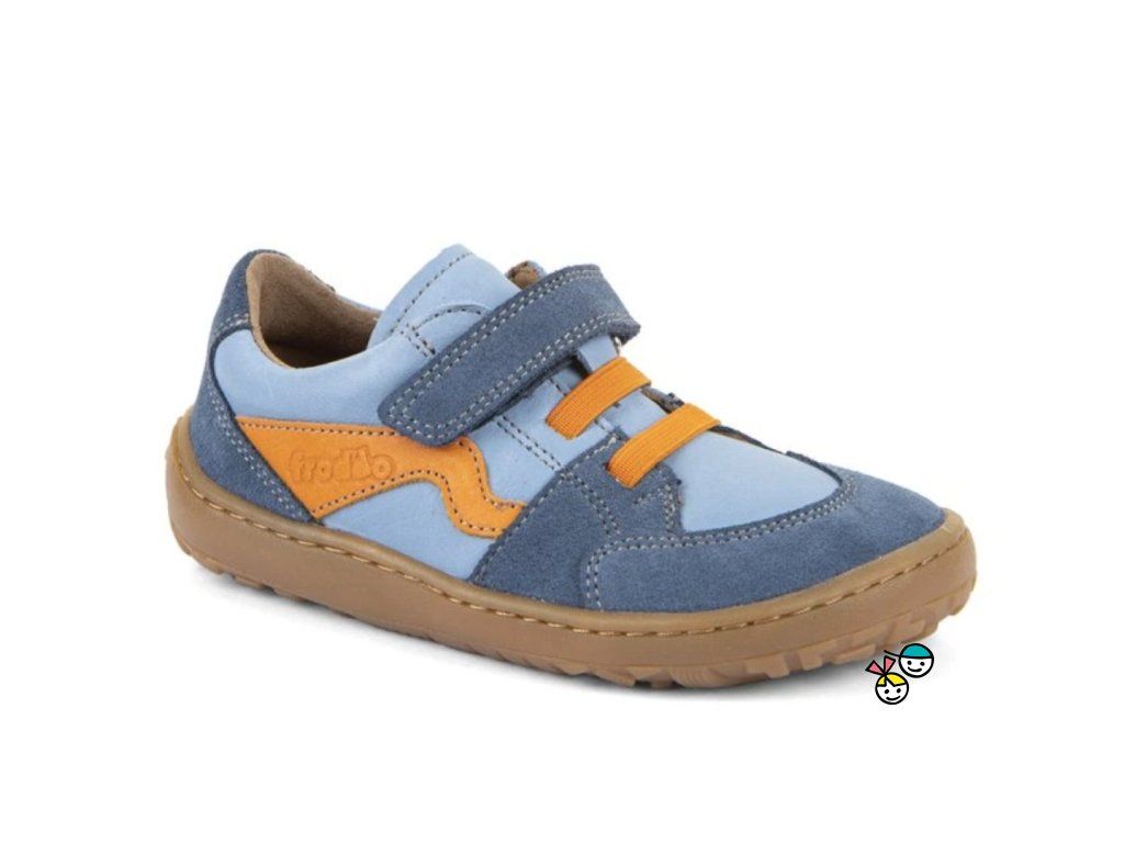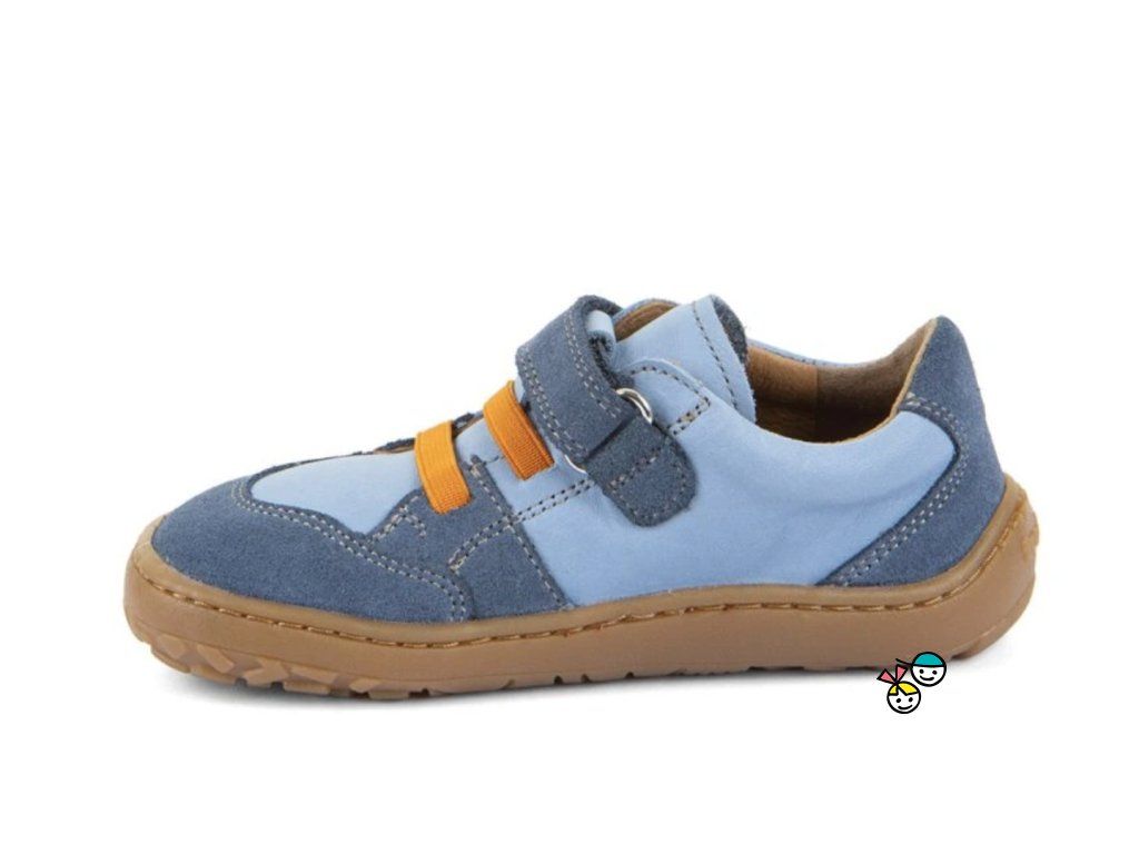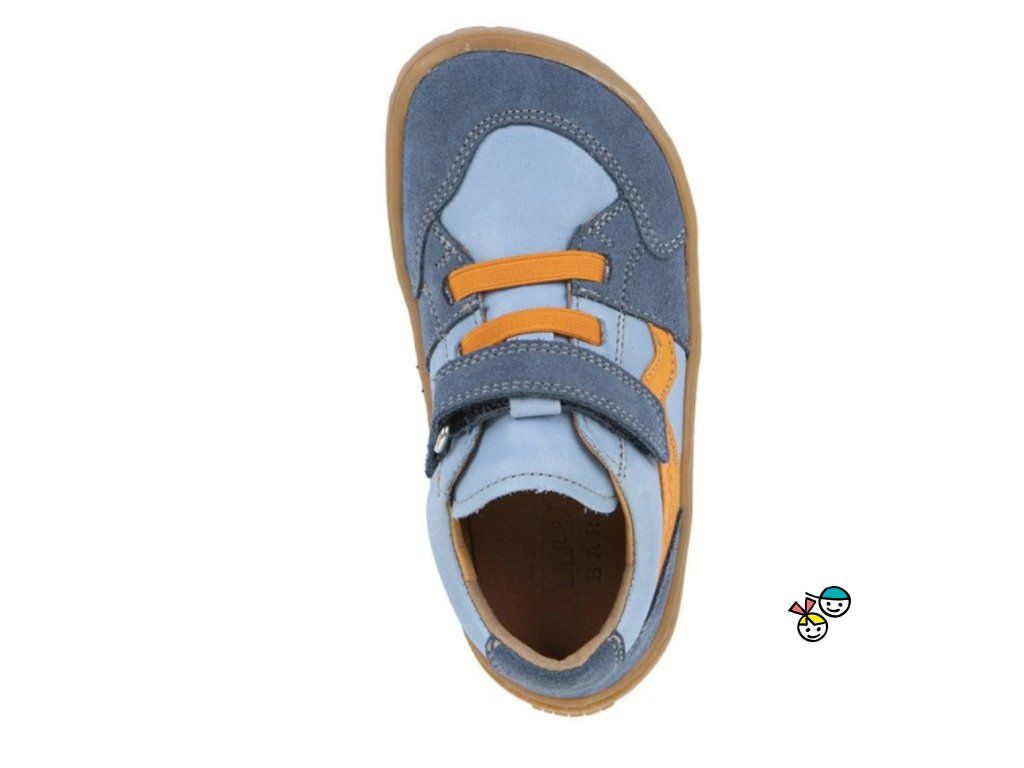 Barefoot celoročky v modré barvě s oranžovými prvky.