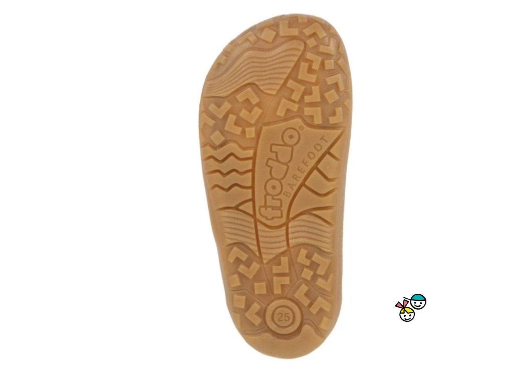 Froddo celoročky jsou kožené boty, které se snadno využijí do města i na výlety do přírody. Botky jsou lehké, flexibilní a umožňují přirozený pohyb a vývoj dětské nožky, jako při chůzi naboso. Barefootové boty jsou vyráběny výhradně z přírodních materiálů (bez chemických a škodlivých látek), tedy z měkké kůže, která je barvená přírodními barvivy. Zapínání na suchý zip – dají se opravdu hezky dotáhnout. Model River je vhodný na úzké paty.