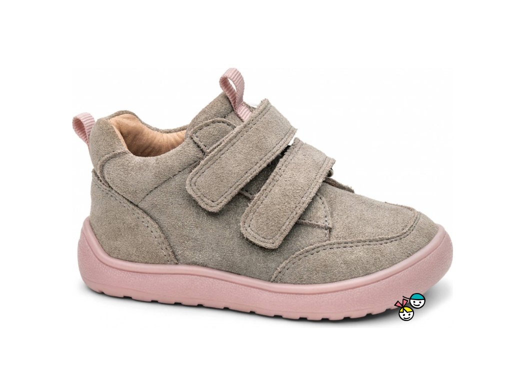 Dívčí celoroční kožená barefoot obuv v šedé barvě s metalickými odlesky (na fotografii není zřetelné, ale botička se krásně třpytí)