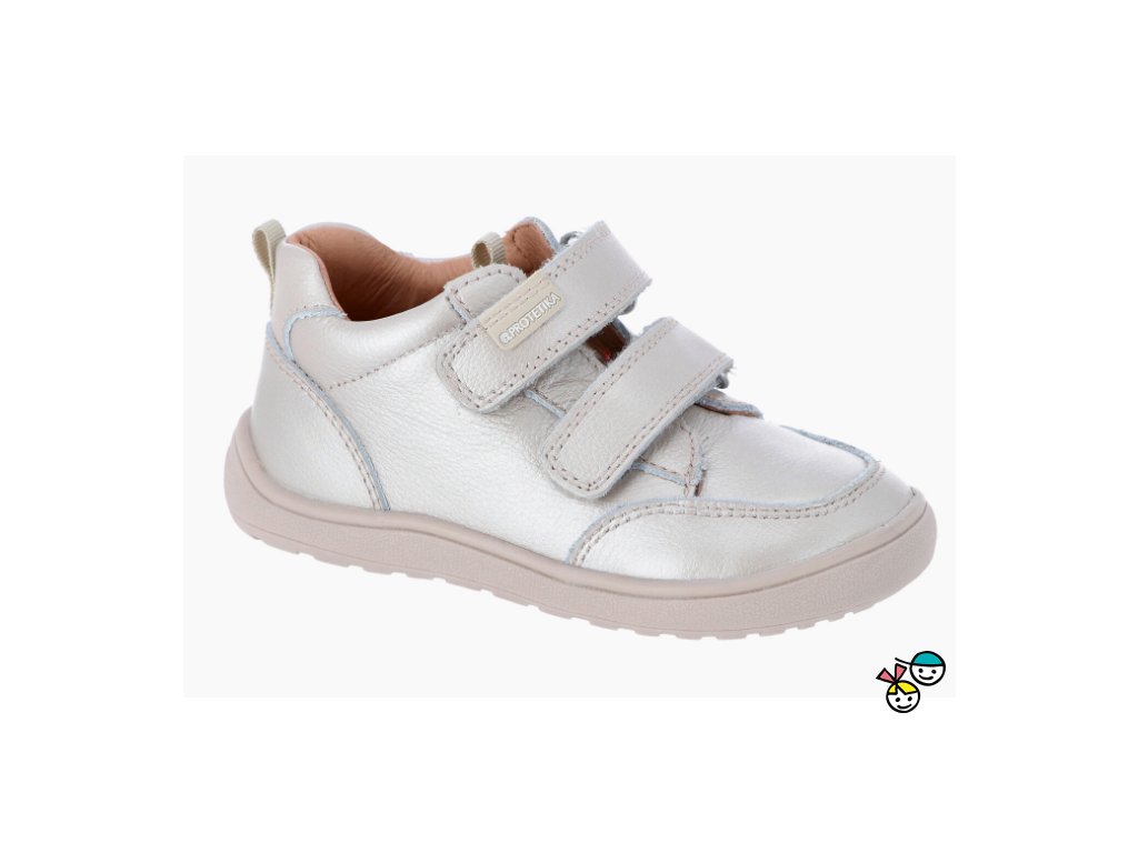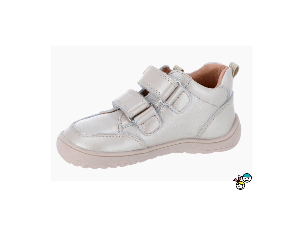 Dívčí celoroční kožená barefoot obuv ve stříbrné barvě.