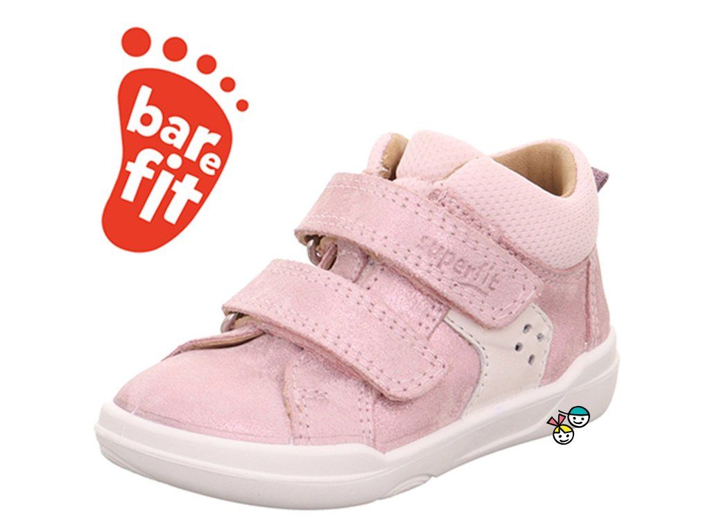 Celoroční barefoot obuv model SUPERFREE, to je extrémně lehká bota vhodná na úzké nožky. Barva světle růžová s perleťovými odlesky.