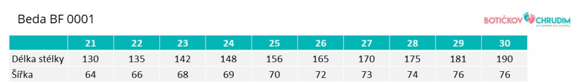 - Tvar špičky: široká špička, poskytuje dostatečný prostor pro zdravý růst nohou