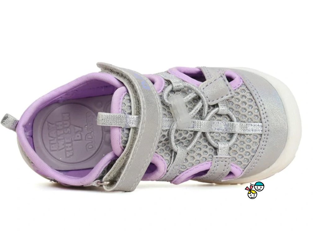 Dětské sportovní textilní lehké sandálky s krásně ohebnou podešví a mírně zpevněným opatkem, okopová špička ochrání botičky před okopáním, střední střih, vhodné pro střední nožičky. Rychleschnoucí s reflexními prvky. Zapínání na suchý zip + gumička přes nárt s možností stahování.