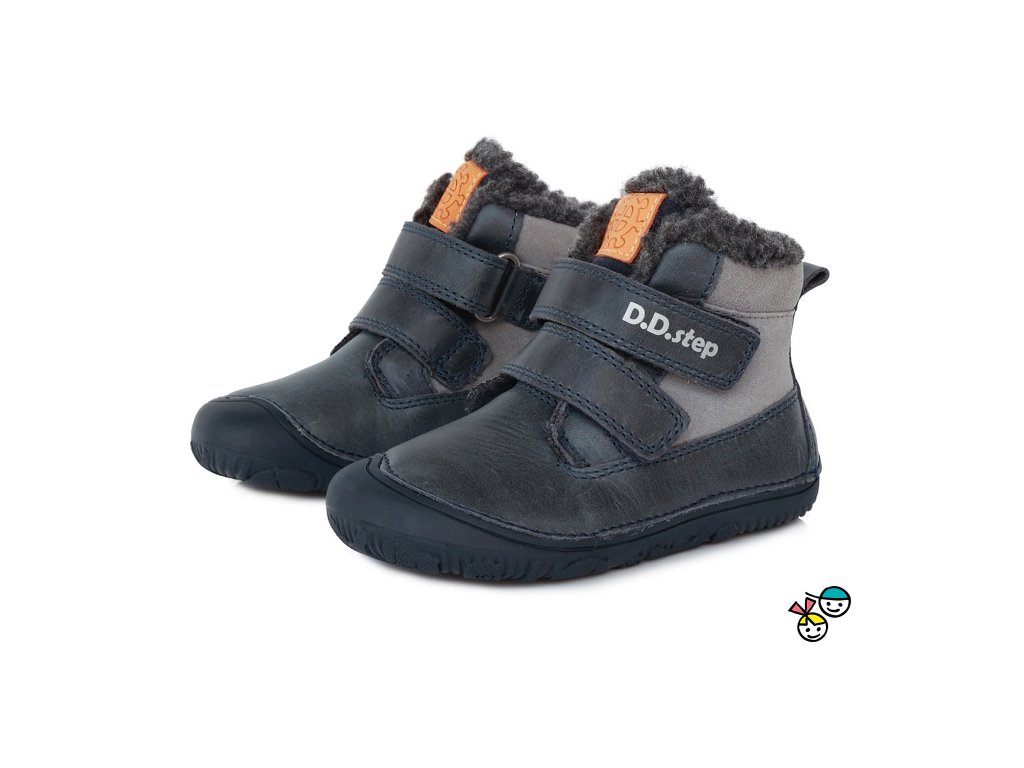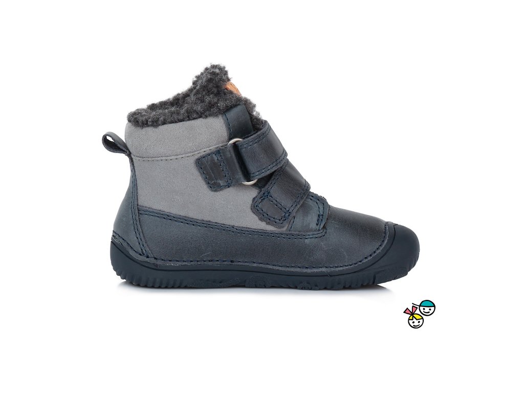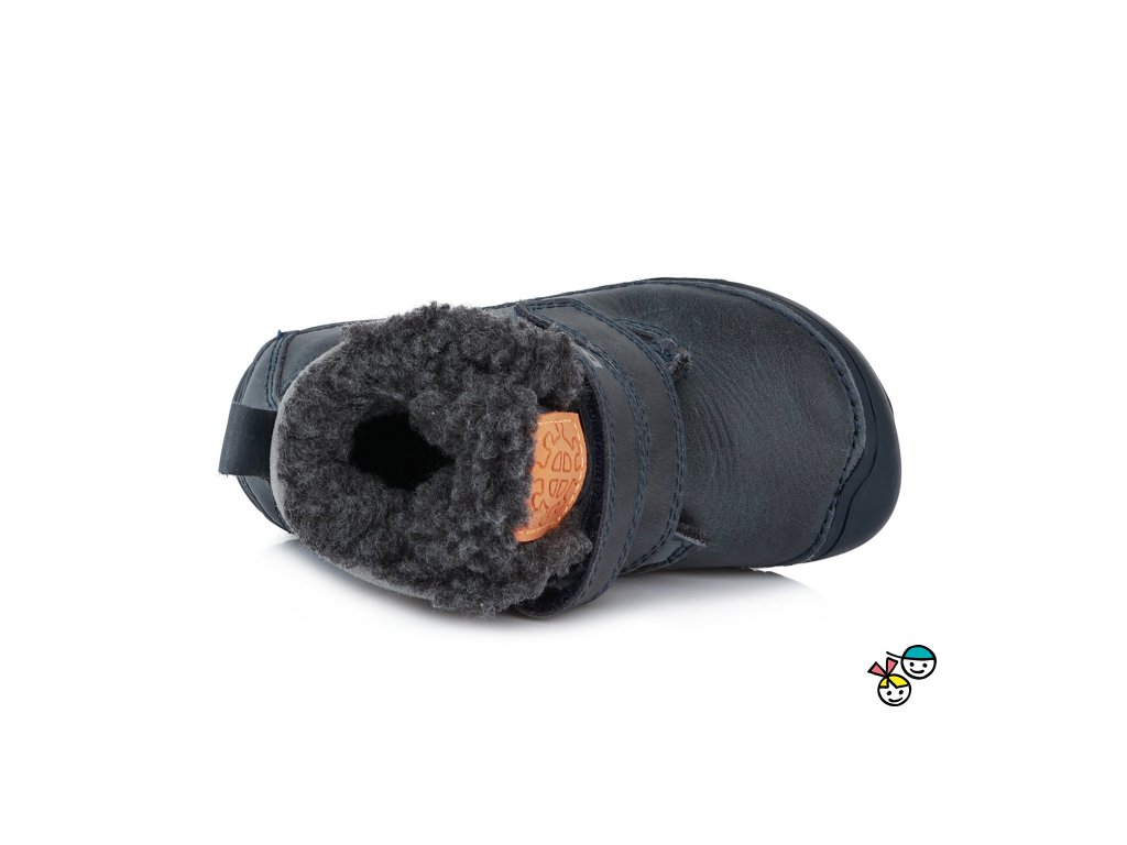Dětské zateplené barefoot kožené zimní botky s krásně ohebnou podešví, okopová špička ochrání botičky před okopáním, širší střih, vhodné pro širší nožičky. Tyto botičky jsou barefoot. Zapínání na suchý zip. Nedoporučujeme na vysoký nárt.
