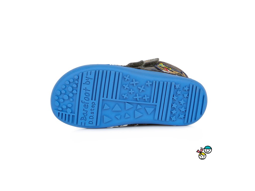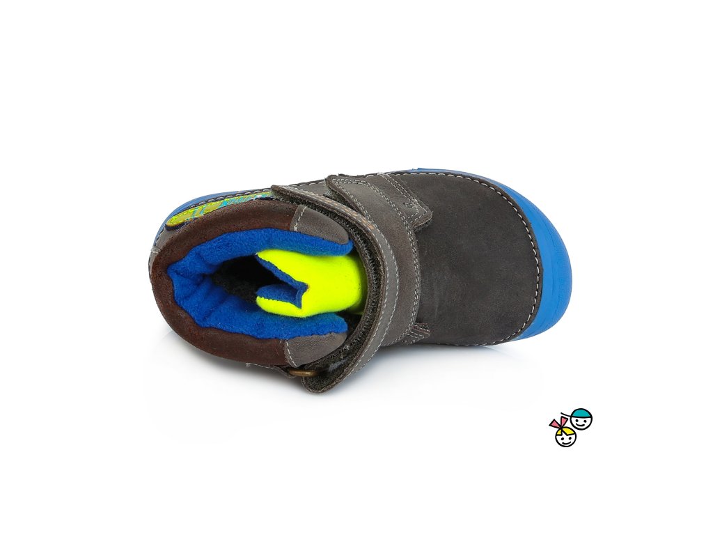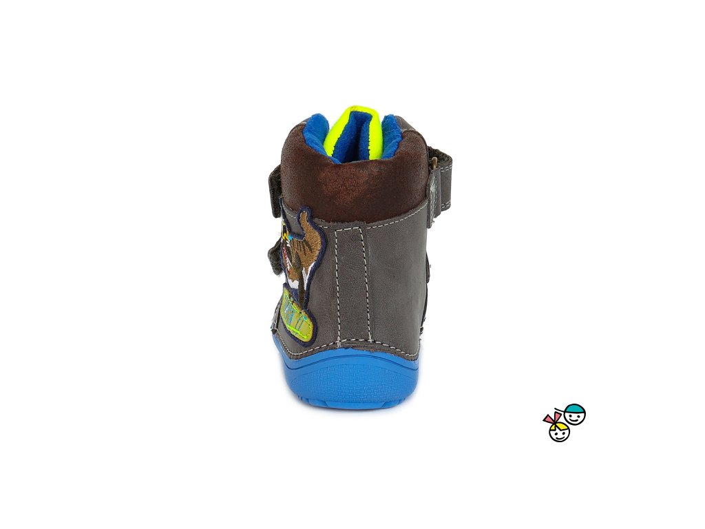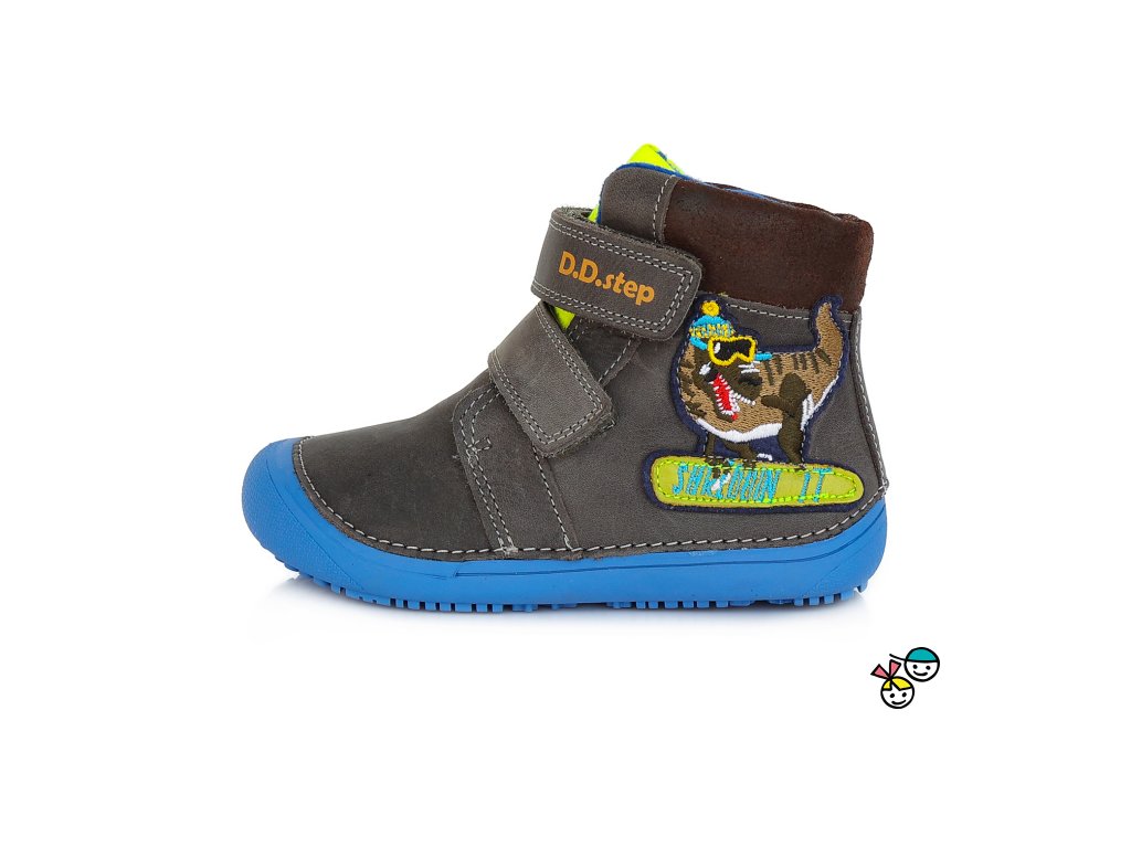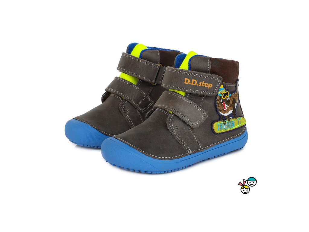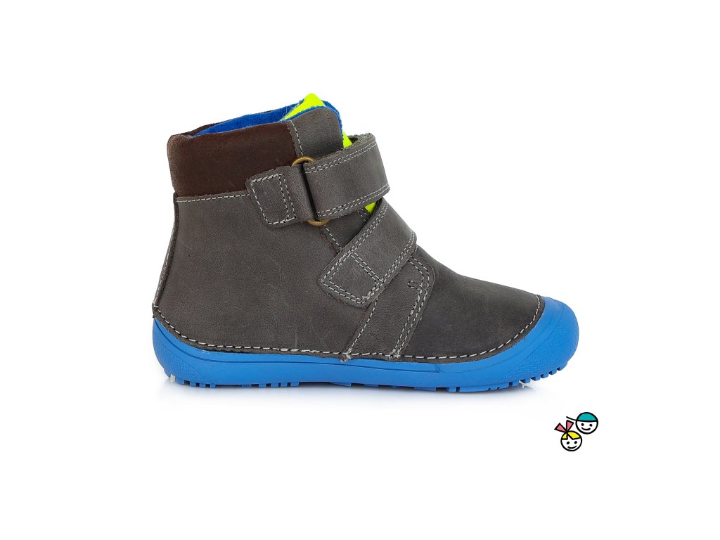 Zimní barefoot kotníčková obuv D.D. Step s velmi ohebnou podešví v šedém provedení.
