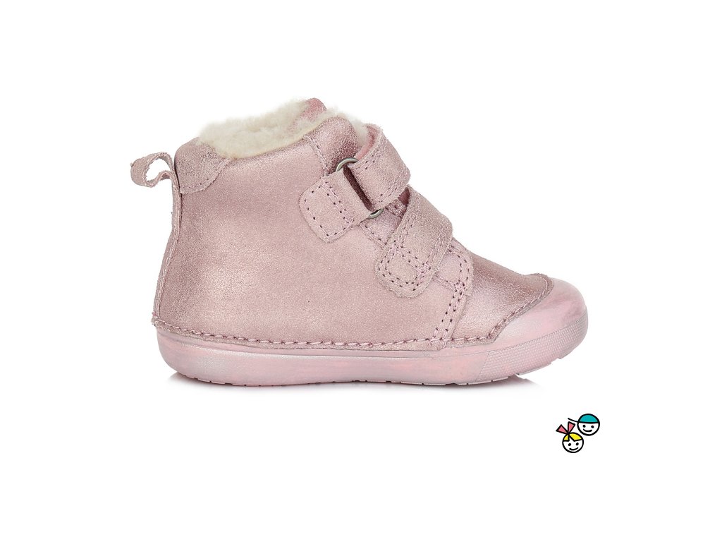 Dětské zateplené kožené zimní botky s krásně ohebnou podešví, okopová špička ochrání botičky před okopáním, širší střih, vhodné pro normální a širší nožičky. Zapínání na suchý zip
