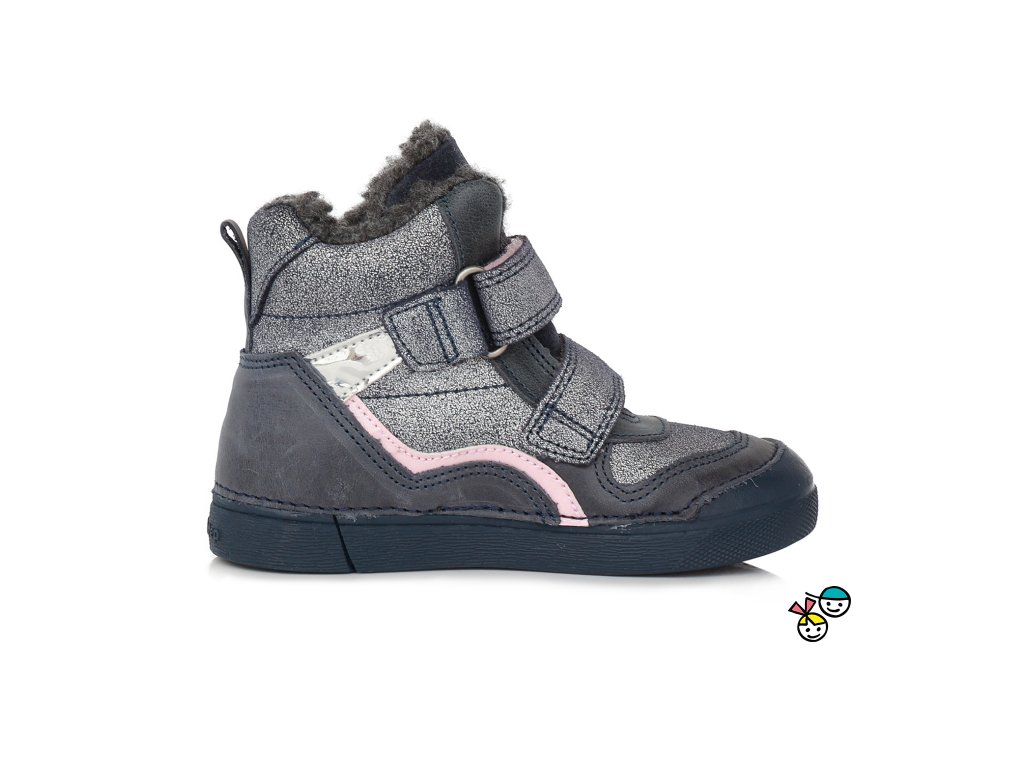 Zimní obuv D.D. STEP W068-495A - modrá třpytivá (růžový proužek)