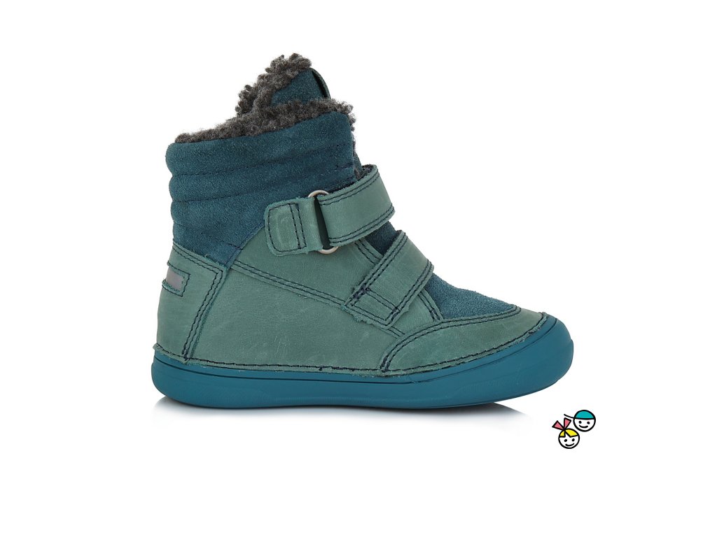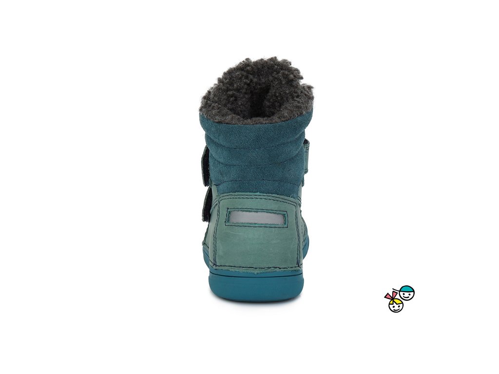 Zimní kompromisní kotníčková obuv D.D.step v tyrkysové barvě s reflexními prvky.