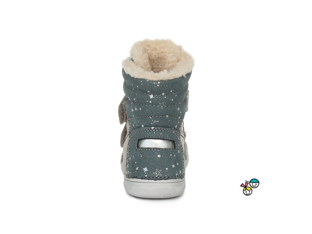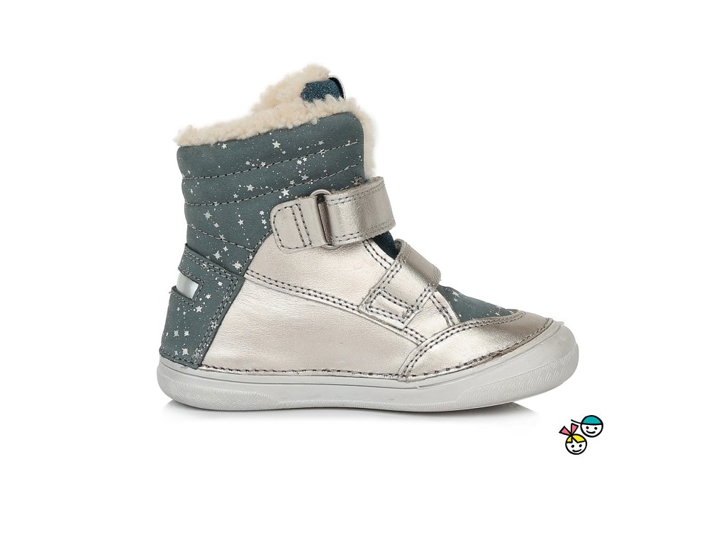 Zimní kompromisní kotníčková obuv D.D.step v šedo-stříbrné barvě.