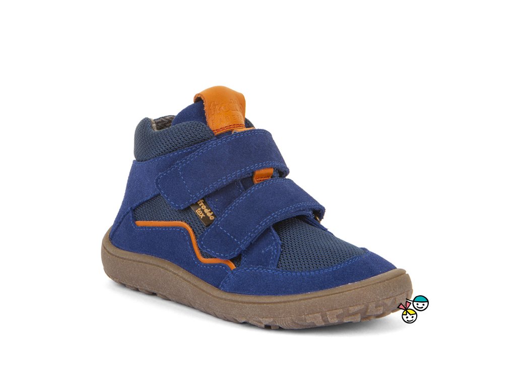 Celoroční kotníková obuv, modrá s oranžovými prvky, s membránou.