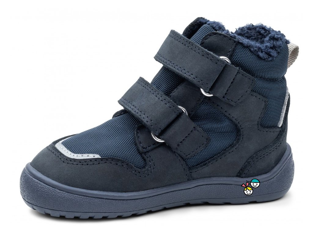 Zimní kotníková barefoot obuv v modré barvě s membránou Pro-tex.