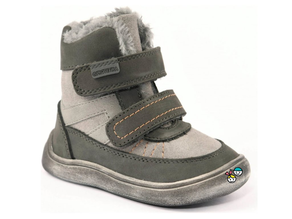 Kotníčkové barefoot kožené zimní boty s vyjímatelnou fleecovou stélkou. Boty mají měkký opatek a praktický zvýšený gumový okop. Zapínání na dva suché zipy. Boty jsou zateplené hřejivým kožíškem. Určitě také oceníte membránu PRO-tex.
