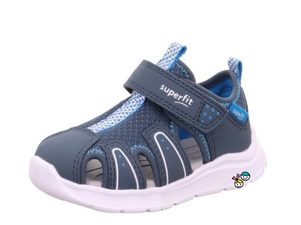 Dětské letní sandálky rakouské značky Superfit jsou absolutním hitem léta - speciálně uzpůsobené pro dětskou aktivitu na suchu i ve vodě a dokonce se mohou prát v pračce na 30 stupnů. Sandálky jsou odolné a vyrobeny ze syntetických materiálů, textilu a chladného neoprenu, a proto jsou absolutně voděodolné. Sandály jsou měkké, extrémně lehké, můžou se nosit i ve vodě, rychle schnou a dají se snadno čistit. Podešev je vyrobena z EVA materiálu, díky kterému je velmi lehká, ohebná a pružná, přesto nabízí spolehlivý a bezpečny pohyb na všech površích. Děti mají v sandálkách kryté prsty i patu, a tak chrání nožku. Zapínání je na jeden suchý zip, ale místo pro nárt je prostorné. Vhodné pro normální až užší nožky.