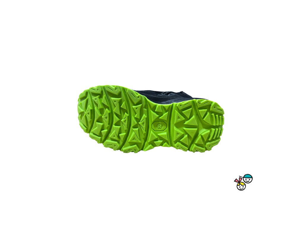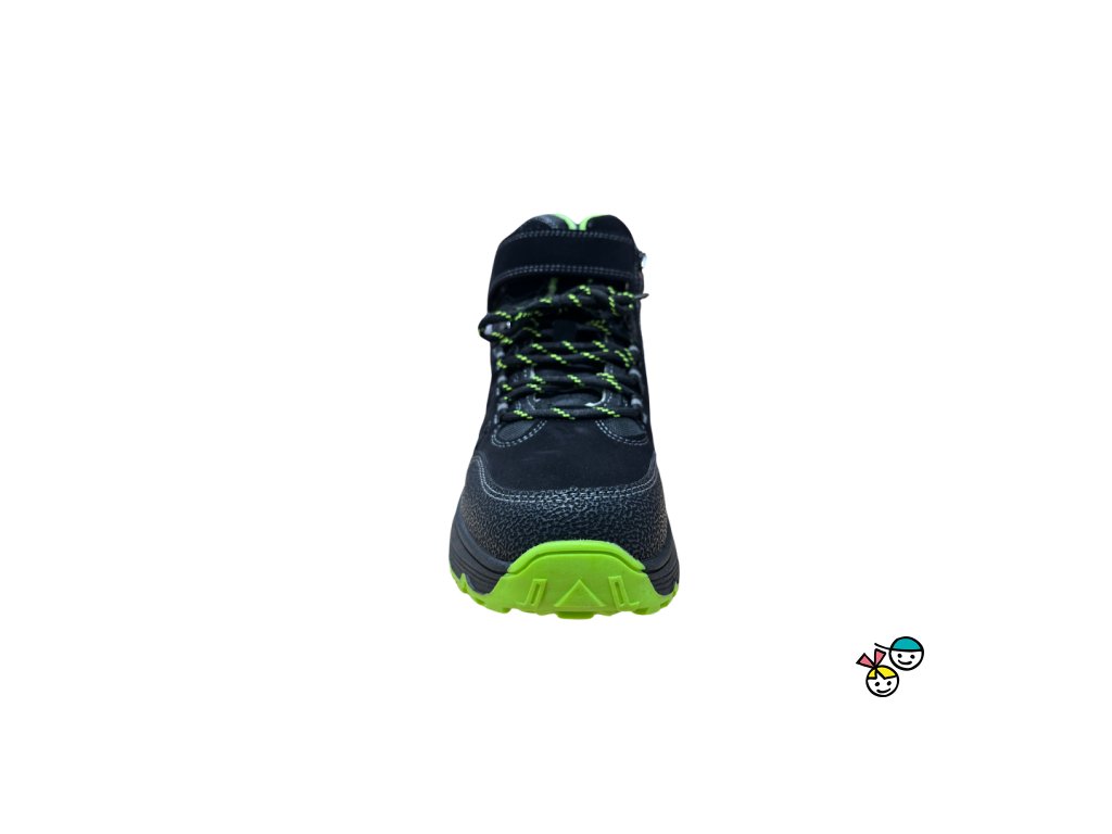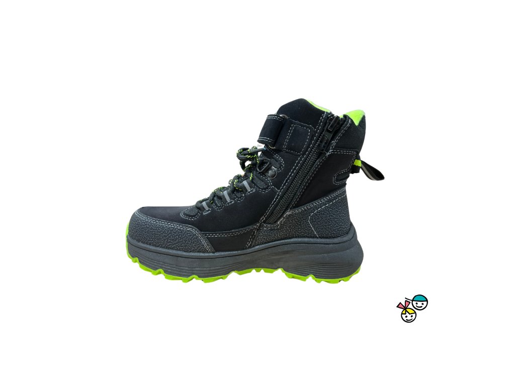 Zimní obuv v černé barvě se zelenými prvky. Praktické postranní zapínání na zip.