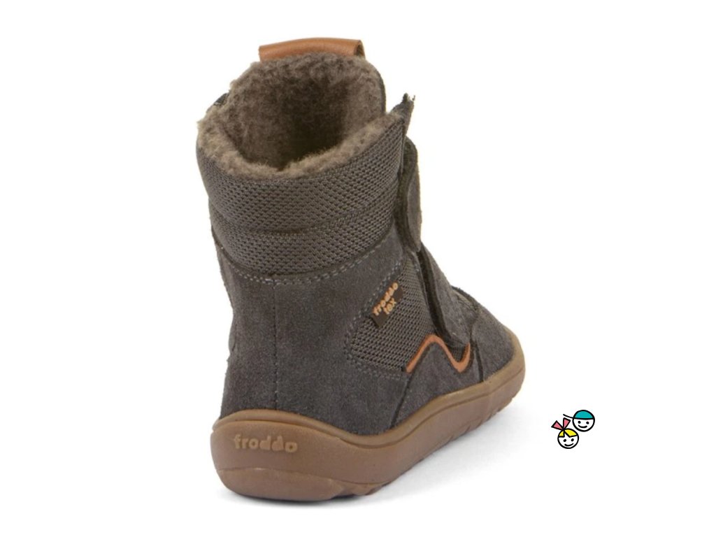 Froddo boty jsou kožené kotníčkové boty, které se snadno využijí do města i na výlety do přírody. Botky jsou lehké, flexibilní a umožňují přirozený pohyb a vývoj dětské nožky, jako při chůzi naboso. Barefootové boty jsou vyráběny výhradně z přírodních materiálů (bez chemických a škodlivých látek), tedy z měkké kůže, která je barvená přírodními barvivy. Vyteplené kožíškem. Zapínání na suchý zip – dají se opravdu hezky dotáhnout.