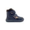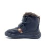 Kotníčkové barefoot kožené zimní boty s vyjímatelnou fleecovou stélkou. Boty mají měkký opatek a praktický zvýšený gumový okop. Zapínání na dva suché zipy. Boty jsou zateplené hřejivým kožíškem. Svršek obuvi tvoří hladká kůže spolu se syntetickým materiálem na špici a patě.